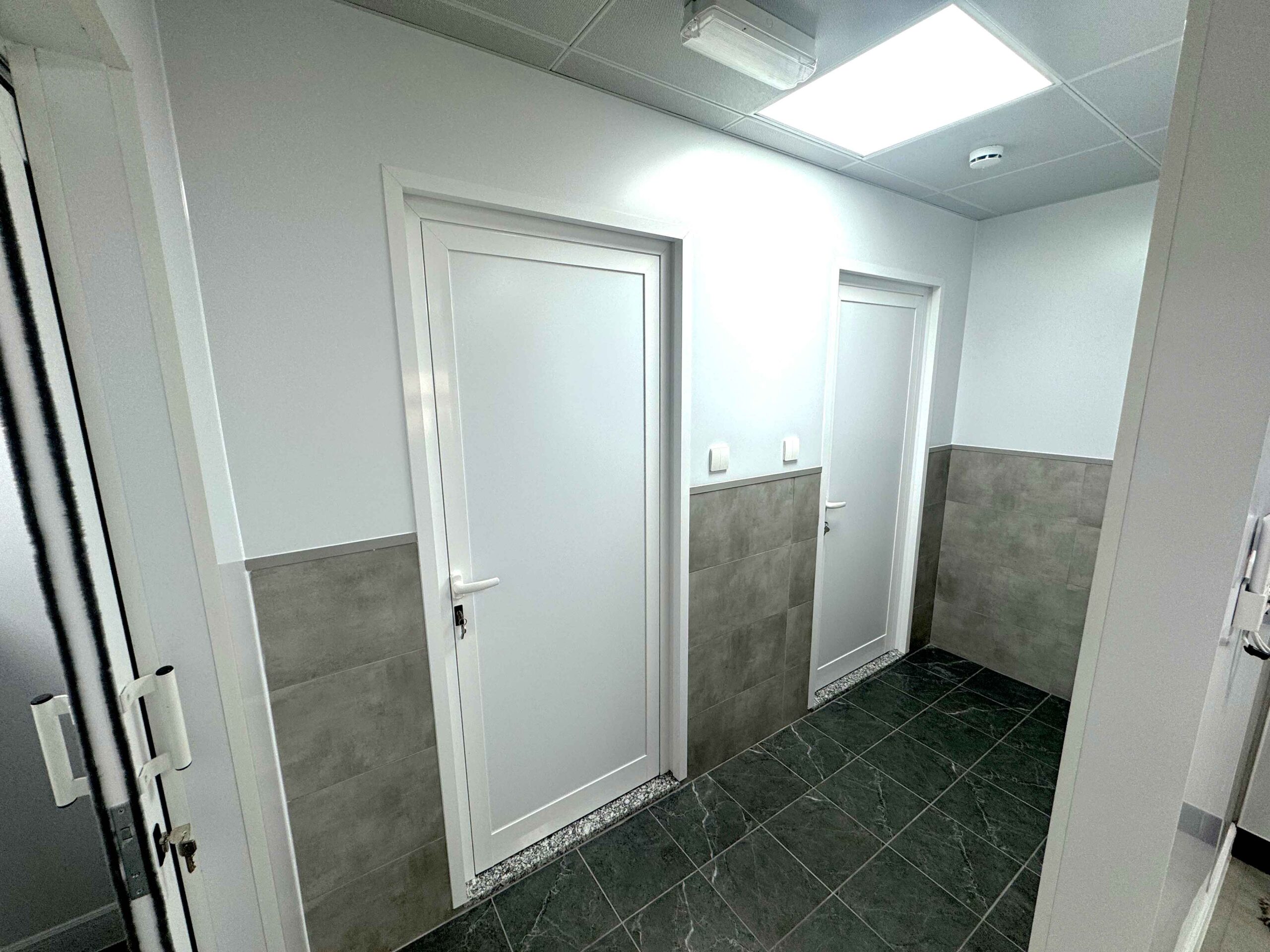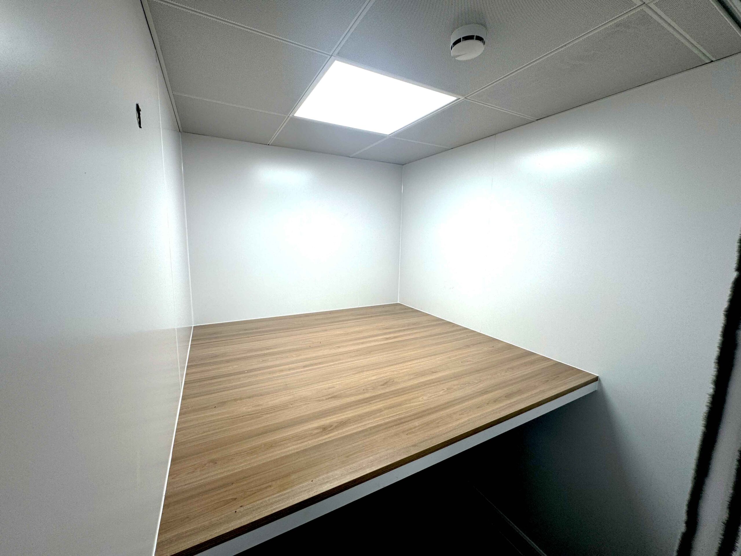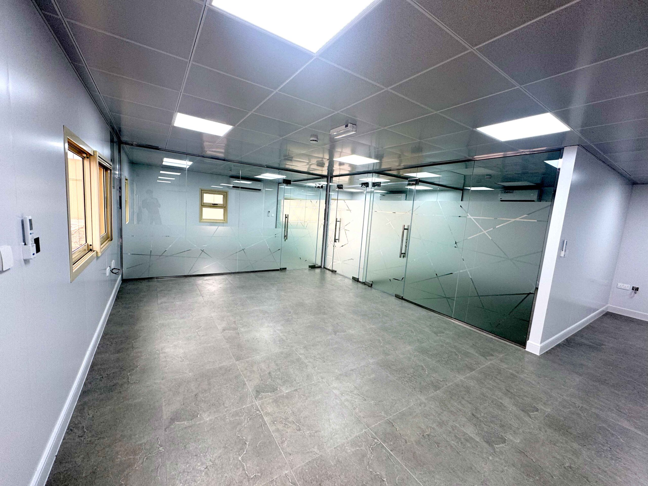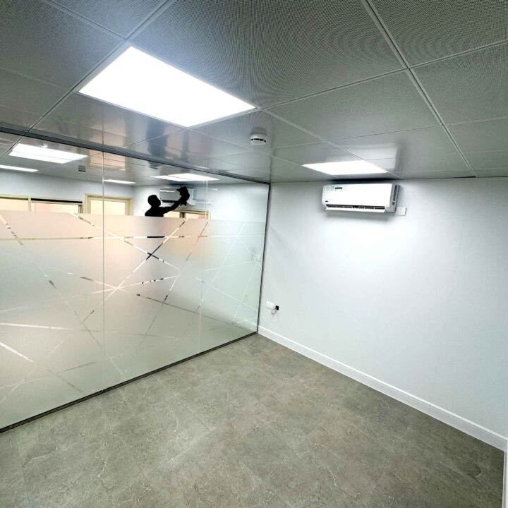 10mm single-glazed glass partitions, offering a contemporary office look while maintaining visibility and natural light flow. - Doors: