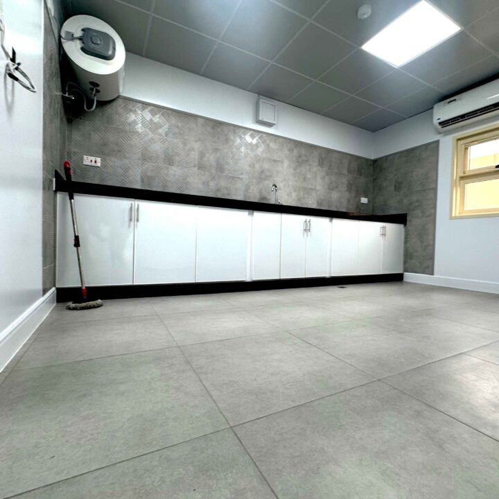 Powder-coated aluminium frame windows ensuring ventilation, natural lighting, and long-lasting performance. - Flooring: